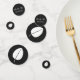 Decore sus mesas para un boda o evento de otoño con este paquete de confetti personalizado. Las grandes y pequeñas piezas tienen una hoja blanca en la parte delantera y trasera, ambas con un elegante fondo negro. El tamaño medio de la pieza incluye iniciales de ejemplo y la fecha que puede personalizar para su propio día especial. Este confetti coincidirá con cualquier otra hoja de otoño en producto negro para que puedas hacer tu evento tan coordinado como quieras.