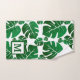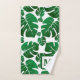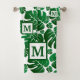 Toallas de baño monograma tropical. Plantas tropicales verdes y blancas de Monstera con toallas de baño monogramo.