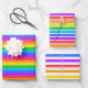 Una hoja de papel diseñada con un patrón rayado con colores arcoiris brillantes y blanco. Personalizar el tamaño del patrón entre otras opciones.
