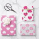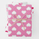 Envolviendo hojas de papel con corazones rosados calientes, corazones blancos y corazones rosados claros. Ideal para El día de San Valentín, regalos de boda, y regalos de cumpleaños o ducha para niñas.