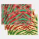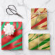Hojas de papel de envoltura de personalizados con huellas de oro, rojo y verde festivo. Incluye un conjunto de (3) tres hojas de papel de envoltura.