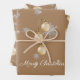 Añade brillo festivo a tus paquetes con estas hojas de papel de envolver de ornamentos de Navidad dorados. Con elegantes adornos navideños con cintas y arcos y colgando baudibles, el diseño se ve acentuado por delicados copos de nieve blancos para un alegre tema de vacaciones. El alegre saludo Feliz Navidad aparece en un guión elegante, mientras que el diseño simple mantiene el aspecto intemporal y versátil. Navidades que deben tener provisiones de regalos, estas sábanas traen elegancia festiva a todos los presentes bajo el árbol.