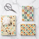 Hojas de papel retro geométrico envuelto, papel coloreado para envolver regalos, en marrón, naranja, amarillo. Transforme sus proyectos creativos en encantadoras obras de arte con esta exquisita colección de 3 hojas de papel retro geométrico.