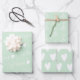 Papel de envoltura verde y blanco a la moda con flores dibujadas en línea, corazones y tipografía de 'Con amor'. Bonito, suave, verde pastel y blanco. Perfecto para envolver regalos para su día o ocasión especial. Hojas de papel de envolvimiento con motivos verdes.