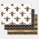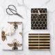 Classy Gold Queen Bee papel envolvente, si buscas un regalo único este año. Papel de envoltura base negra con abeja reina de oro coordinado con peine de miel y hojas de rayas para envolver tus regalos especiales.
