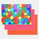 Hojas de papel de envolvimiento de arcoiris de vidrio manchado de color arcoiris de mosaico diseñado para envolver hojas de papel usando azul, verde, amarillo y violeta. Por celeste@khoncepts.com
