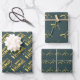 Un moderno mistletoe de oro de los Kissmas de Merry sobre hojas de papel de envoltura festiva verde adecuado para todos los regalos envueltos con amor y un beso.