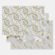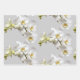 Papel de envolver orquídeas con tallos realistas de orquídeas blancas que hacen patrones de diferentes tamaños sobre color gris plateado. Este envoltorio de regalo de alta calidad cubierto de flores exóticas y tropicales, hará una presentación impresionante para cumpleaños o bodas. Los tallos curvados de orquídeas blancas con pequeños centros amarillos y capullos verdes cubren el papel en imágenes pequeñas o grandes.