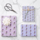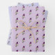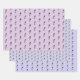 Papel de envolver fino con un patrón de colibrí Lucifer sobre un fondo lila claro y sobre dos tonos violetas.