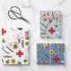 Patrón de diseño creativo con temática médica que incluye suministros de salud.