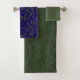 Este juego de toallas de baño presenta un diseño sofisticado de hojas verdes y azules oscuras. El diseño presenta una presentación vibrante y estética agradable con su exquisito follaje.