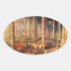 Rayos de cálida luz solar otoñal a través de los árboles amarillos y rojos en el borde del bosque y alegran las hojas caídas en el suelo del bosque. Más profundo en el bosque, donde las sombras son más oscuras, todavía hay atisbos de oro y de cardenales.
