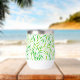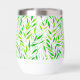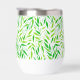 Impresión de hojas dibujadas a mano en una rama. El acento es de diseño, con un estilo minimalista. Color verde.