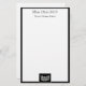 Hoja de estacionería mostrada en papel blanco básico con bordes negros y una corona de estilo Miss USA para las reinas de concurso. Personalizar esta hoja de papel y cambia el nombre y el título al tuyo y cambia el papel a lo que quieras.