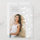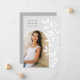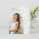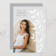 La moda y la moderna invitación de graduación presentan una sola foto vertical/retrato orientada en un diseño arqueado, con viñas trepadoras de hojas botánicas blancas a lo largo del lado derecho. Personalice con el nombre de su graduado, el año de clase y la escuela y añada un mensaje personal al dorso, junto con una foto adicional.