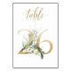 Tarjeta de número de mesa con un motivo botánico - una ilustración de acuarela de hojas verdes y doradas. Mesa 26. Por favor, revise todos los números disponibles