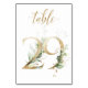 Tarjeta de número de mesa con un motivo botánico - una ilustración de acuarela de hojas verdes y doradas. Mesa 29. Por favor, revise todos los números disponibles