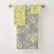 Hojas grises y amarillas en un fondo rayado.Hojas grises y amarillas en un fondo rayado.Esquema de color de moda de 2021.