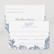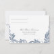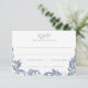 Esta elegante tarjeta de respuesta presenta majestuosas hojas y espirales en la parte inferior. Está configurada en azul polvoriento, pero puedes cambiar el color a lo que te guste simplemente cambiando el color de fondo.
