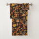 Patrón otoñal pintado a mano con varias hojas otoñales, bayas, bellotas, aves y setas