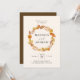 Invitaciones a bodas de otoño elegantes y rústicas con una corona de cálidas hojas de otoño que rodean sus nombres con los detalles de su boda que se muestran a continuación. El reverso de la invitación presenta un color de fondo marrón oscuro que contrasta.