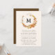 Elegantes y rústicas invitaciones de casamiento en otoño con una corona de cálidas hojas de otoño y ramas que rodean su monograma personalizado y los detalles de su boda que se muestran a continuación. El reverso de la invitación presenta un color de fondo marrón oscuro que contrasta.