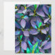 Una obra de arte digital de ensueño que exhibe un dosel de hojas en violetas suaves, azul profundo y acentos verdes brillantes. El diseño estilizado combina la belleza natural con una estética de fantasía, perfecta para el arte en las paredes, las impresiones o los fondos digitales que irradian calma y creatividad.