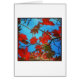 Una tarjeta de felicitación con una atractiva foto al estilo de Instagram cuadrado del centro de hojas de otoño rojas contra un cielo azul vívido. Una repetición más pequeña de la imagen en la parte de atrás junto con el título y el fotógrafo/artista etc. Esta tarjeta también se puede personalizar.