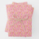 Hojas rosadas y amarillas sobre hojas de papel de regalo rosa