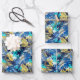 Colorido collage de palmas tropicales y hojas de monstera en azul, oro, turquesa y blanco, estas sábanas de papel envuelto son divertidas para regalar para cualquier ocasión. COINCIDIENDO con los artículos de nuestra tienda.