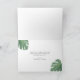 Esta tarjeta de agradecimiento elegante y de moda cuenta con monstera a la acuarela, hojas de ficus y hojas de pothos en verde sobre un simple fondo rosa y blanco. También se incluye una moderna caligrafía manuscrita en verde.