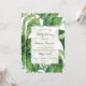 Una bonita invitación botánica/tropical/jungla/hojas de palma con un rectángulo blanco. Fácil editar o eliminar los campos de texto disponibles para adaptarlos a sus necesidades personales. Perfecto para el verano, duchas/fiestas, etc. Artículos que coinciden con los disponibles en esta colección de hojas, como pegatinas y tarjetas de configuración.