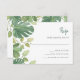 Esta elegante y moderna tarjeta de respuesta de boda cuenta con monstera a la acuarela, hojas de ficus y hojas de pothos en verde sobre un simple fondo blanco.