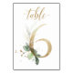 Tarjeta de número de mesa hermosa con un motivo botánico - una ilustración de acuarela de hojas verdes y doradas. Mesa 6. Por favor, revise todos los números disponibles