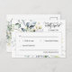 Esta tarjeta de respuesta de RSVP de evento de boda con tarjeta de devolución con respaldo de dirección de retorno presenta un estilo minimalista moderno elegante con arreglos de follaje de vegetación de acuarela y hermosa caligrafía y fuentes tipográficas limpias y serif en un fondo blanco. La simplicidad y el diseño limpio de esta tarjeta de respuesta de RSVP de boda funciona bien con todos los temas de boda y definitivamente es un gran añadido a su boda. Simplemente personalice los nombres de la pareja, la fecha, la dirección de devolución y otra información en unos sencillos pasos y personalícela para darle un toque personal agradable.