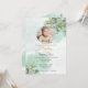 ¡Celebren el hito sagrado del bautismo de su pequeña con nuestras hojas verdes naturales con invitación al bautismo fotográfico! 🌿 📷 Personalizar este diseño sereno añadiendo una foto preciada, creando un keepsake personalizado que capta la esencia de la ocasión. Perfecto para celebraciones inspiradas en la naturaleza, promete hacer su evento verdaderamente inolvidable. ¡Ordenen ahora y conmemoren este momento bendito con sus seres queridos! Esta bonita invitación a bautizar o bautizar presenta un suave fondo de color verde agua con hojas verdes y una cruz dorada en el centro. La parte posterior de la tarjeta es un fondo acuático verde suave con hojas verdes.