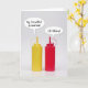 Esta tarjeta de felicitación divertida ofrece la fotografía de las botellas rojas y amarillas de la salsa de tomate y de la mostaza con las burbujas del discurso. El beneficiario sepamos que usted está pensando en ellas. Usted puede también enviarla apenas para decir hola.