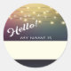 Hola, me llamo etiqueta con un motivo de luces de fiesta. Los invitados pueden escribir su nombre en el espacio proporcionado para una introducción festiva.
