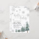 Hola, nena. Invierno con ducha de bebé con efecto purpurina plateado y pinos acuarelas.