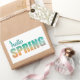 Hola pegatinas rectangulares de primavera.