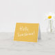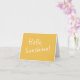 Una tarjeta de nota amarilla con la sol de las palabras "hola" imprimió en ella en blanco.