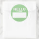 El pegatina de etiquetas de nombre con "Hello, I Am" se puede utilizar para escribir a nombre de una persona, o un adjetivo, título o lema, como "I Am Single" o "I Am the Event Planner". Esto puede llevar a mucha más diversión que simplemente usar nombres en su fiesta o evento si anima a los invitados a ser creativos. También es bueno para identificar personas en un boda u otro evento, es decir, "Soy... Madre de la novia".