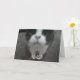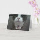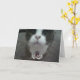Tarjeta adorable. Encuentro cercano con un gato que dice "hola!" El interior de la tarjeta lee "apenas una nota para decir "hola!"