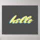 Hola tipografía palabra arte poster tiene letras en negrita amarillas y azules sobre fondo gris carbón para la moderna decoración de moda en casa o oficina.