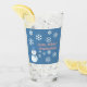 A Slice of Life and Delight presenta un tumbler de vidrio Hello, Winter Wonderland con un muñeco de nieve decorado con copos de nieve blancos, escritura rosa y un fondo azul. El vaso de nieve también tiene un gorra azul y una bufanda.