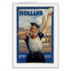 Poster de viajes de época para Holanda, mostrando a un chica con traje nacional tradicional.