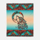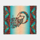 ¡Esta es una manta única "una especie" tribal de cebada de lobo! Presenta un Lobo Tribal Nativo Americano sobre un fondo Naranja y turquesa... Rodeado por un borde suroeste en turquesa, Naranja y negro! Diseño De Arte Original Del Artista Kerry Miller.