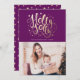 Deslumbra a tus amigos y familia esta temporada de vacaciones enviándoles una hermosa tarjeta de fotos de vacaciones! La tarjeta fotográfica de la festividad presenta una tipografía elegante con letras a mano con las palabras "Holly Jolly" y estrellas con un estilo de Relieve metalizado falso de color dorado brillante en un fondo morado. La parte trasera del diseño presenta un bonito diseño de estrellas doradas y blancas. Personaliza tus tarjetas de vacaciones festivas añadiendo tu foto favorita y texto personalizado.
