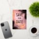 Tipografía simple y moderna de anuncio de compromiso con diseño de superposición de foto. Personalice la plantilla con los detalles de su boda y colores de fondo de foto, etc.