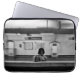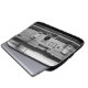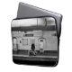 Imagen en movimiento borrosa de un hombre sosteniendo sus bolsas de compras en la estación del metro (Chatelet) en París. Fotografía en blanco y negro del estilo de vida urbano y la cultura de la ciudad.